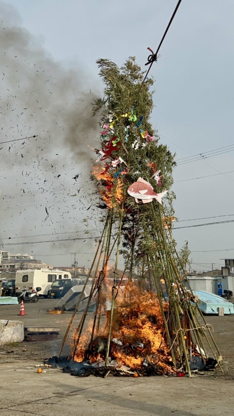 本日1月15日、本社前の林崎漁港で〈左義長〉 (とんど祭り)が行われました。 左義長とは全国各地で行われ、大漁や海上安全をはじめ、豊作、商売繁盛、無病息災 ...